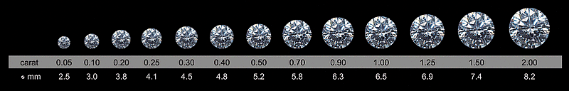 neboli váha je udávána v karátech, označuje se ct a je přímo úměrná velikosti diamantu 1ct = 0,2 gramu. Vážení probíhá na speciálních laboratorních vahách s přesností na tři desetinná místa, přičemž váha v certifikátech se udává s přesností na dvě desetinná místa.