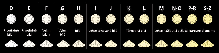 se značí písmeny abecedy od D (nejlepší) až do Z. Hodnocení barvy je založeno na pozorování zvyšující se žluté sytosti.