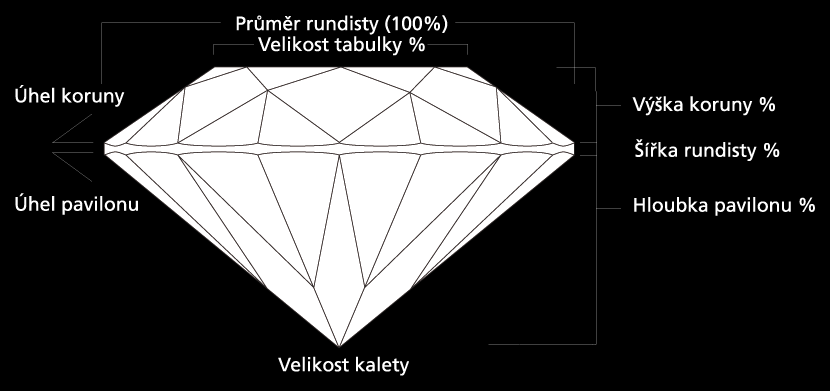 Základní parametry diamantů mající zásadní vliv na cenu diamantu jsou: