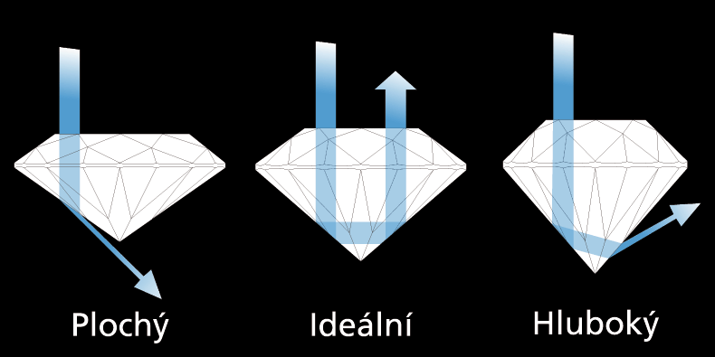 Počátky moderního briliantového brusu beroucí v úvahu opticko-fyzikální vlastnosti diamantů jsou spojeny se jménem Marcel Tolkowsky, který tento brus popsal a matematicky zdůvodnil v roce 1919. Hloubka pavilonu je má rozhodující vliv na refrakci (zpětný odraz) světla v briliantu. U brusu se hodnotí především proporce, symetrie a kvalita opracování kamene. Kategorie kvality brusu – excelentní, velmi dobrý, dobrý, střední, špatný. |